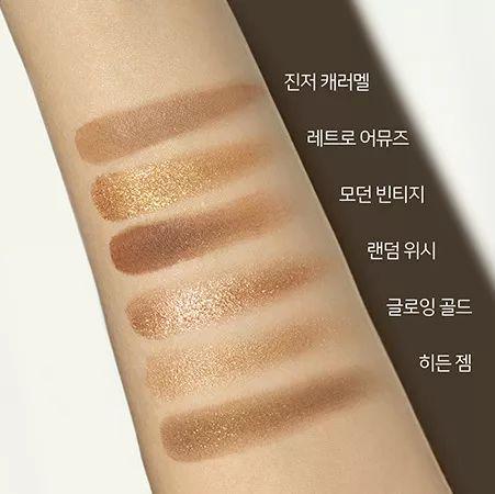 眼影盘有六个颜色,外包装同样也是红蓝搭配的配色设计,复古童趣,每盘都是2个哑光和4个珠光的组成,从颜色上来说都还是蛮日常的~