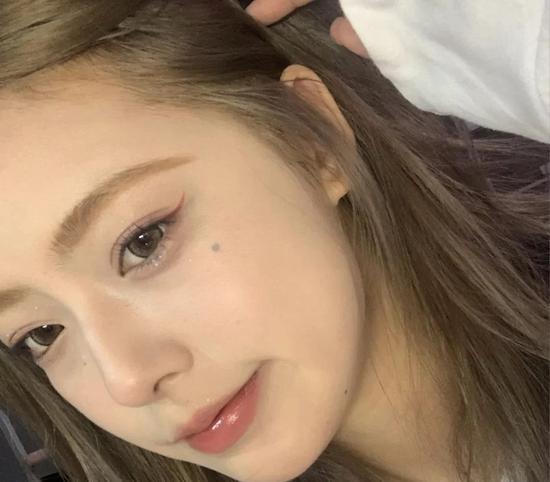 这种栗子色比较百搭,可以搭配任何色系的眼影,奥利酱教你们一个小“心机”——点涂个闪片在眼睛上,眼妆立马清纯中又带有一丝魅惑。