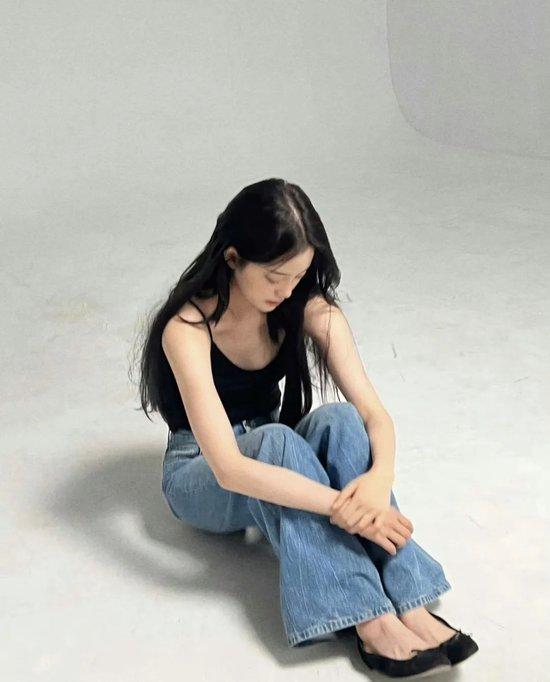 如果是坐姿,最显腿长又不做作的角度就是45度俯拍。因为上身的折叠视觉上存在感会很低,用取景框正好把脚卡在左下角或右下角,不用刻意凹姿势就很显腿长。