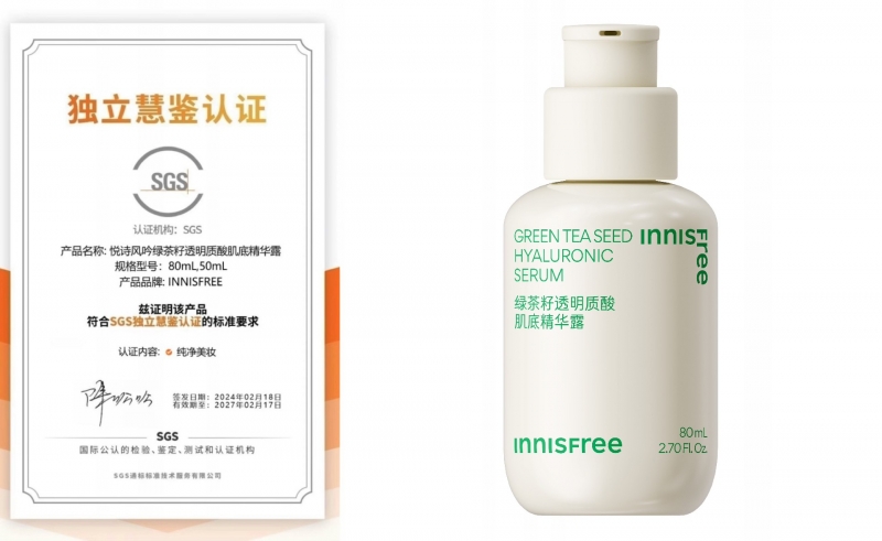 SGS独立慧鉴认证悦诗风吟绿茶籽透明质酸肌底精华露