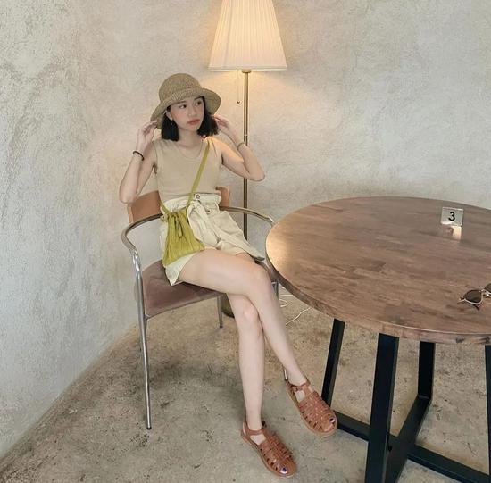 卡其色和牛油果绿,清凉又舒服的感觉。除了配色,编辑还被她扎扎实实种草了各种精致糖果色小包。(少女感的小秘密)