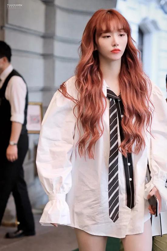 不难发现,黑色领带基本上是女团必备,还都得配白衬衫穿。相比较宽带款式,细带有一种撩人于无形,若有似无的性感调调。