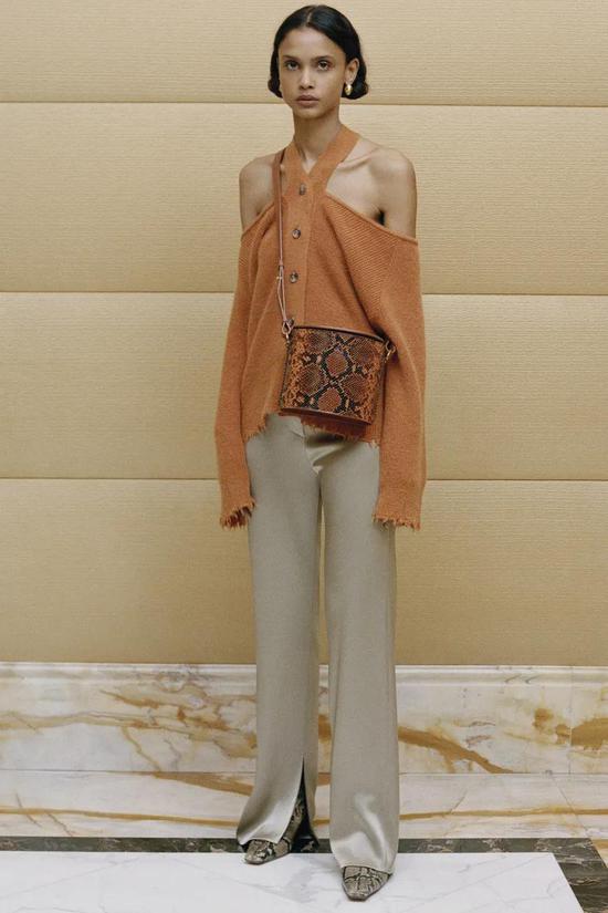 还有优雅艺术感超强的品牌REJINA PYO的一款露胸口毛衣,采用今年最Hit的坎肩➕吊带两件套的设计,品牌的细腻与质感通过挂脖的吊带体现,既适合休闲日常也能搭配高级时装hold住正式场合,性感又时髦。