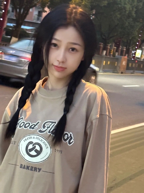 虞书欣最近的一套甜妹 Clean Fit 穿搭,她身穿自己担任代言人的 dzzit 卡其色面包印花长袖卫衣搭配复古牛仔裤,双马尾麻花辫悠闲漫步于黄昏街头,松弛感也是 Clean Fit 的奥义之一!