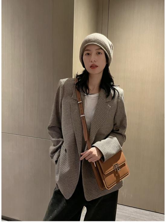 毛呢款贝雷帽也是冬日女孩们的时髦之选,可以像郑秀晶用来点缀一身老钱风的套装,帽子的加入使得整体更具腔调。
