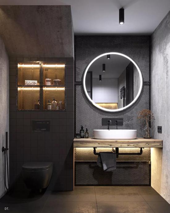 金属网格的装饰饰面,与混凝土墙打造了一个个性的浴室。