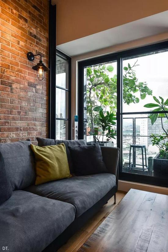 这是一个单身住宅,主要采用了砖和混凝土等工业设计元素,整体的色调比较冷峻灰暗。