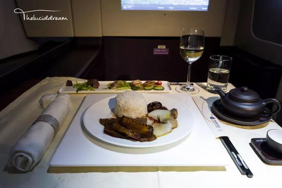 国内几大航司的头等舱配餐中我认为南航为最优,无论口味还是菜品的呈现,当然也不排除是我个人偏爱粤菜的原因。有一次从北京飞去广州,头盘过后的功夫汤深得我心,汤壶虽小,但禁不住杯子更小。一壶汤喝完飞机已经快到上海了。