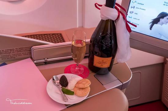 阿提哈德航空在A380客机上配有一名随机厨师。然而,头等舱餐食也是早期常被旅客诟病的重点。一来选择匮乏,二来是菜品质量极不稳定。三年来我共搭乘了五次,倒确实感到了阿提哈德航空在餐食方面的进步,还听说现在已经开始提供鲟鱼子酱了呢。