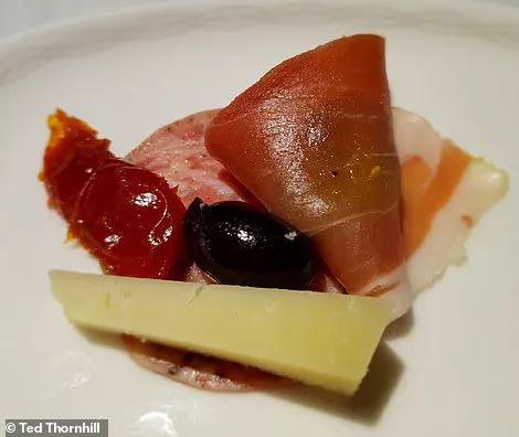Ted选择了奶酪、西班牙火腿和橄榄作为开胃菜,奶酪和火腿都非常正宗新鲜。