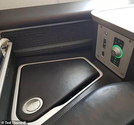 虽然Ted的降噪耳机一开始出了一些故障,但是空乘很快就为他更换了设备。座椅旁边有一个高科技的旋钮,可以自主调节椅子和灯光。
